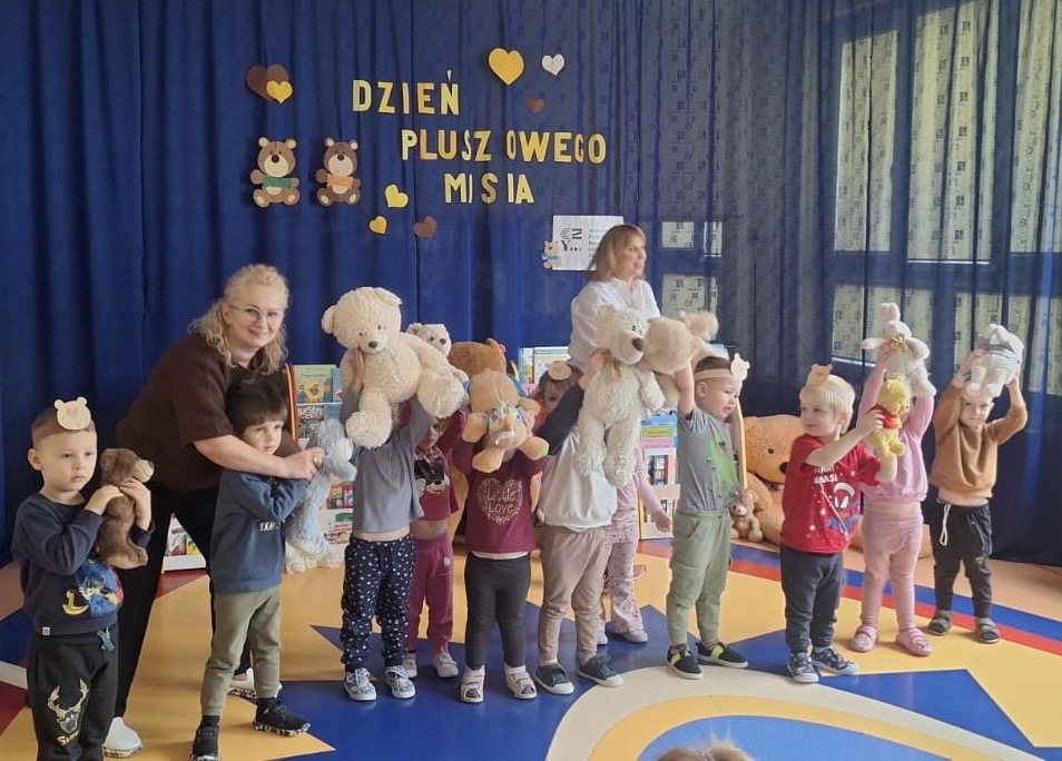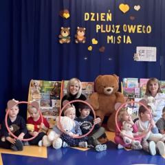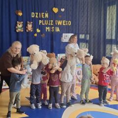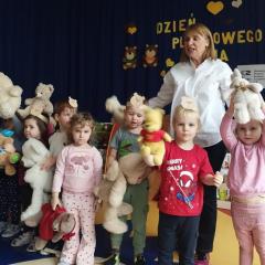 Z okazji urodzin Pluszowego Misia, każde dziecko przyszło do przedszkola ze swoim "milutkim przyjacielem". Można było zobaczyć misie małe, średnie, duże, brązowe, różowe, białe…Wszystkie były śliczne i wyjątkowe. W tym wesołym dniu czekało na dzieci wiele atrakcji.